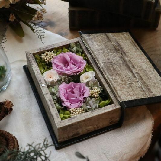 プリザーブドフラワーやドライフラワー、押し花加工から、お花の状態にあった最適な保存方法をご提案、思い出をずっと楽しめる素敵なアレンジにいたします。