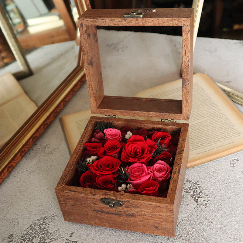 ※プリザーブドフラワーは、生花に特殊な加工を施し、人工的に着色したお花です。カーテンや壁紙などに色が移る場合がございますので、ご注意ください。