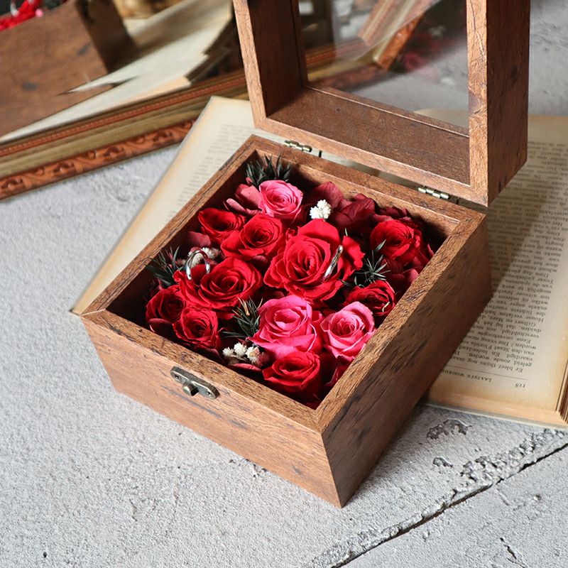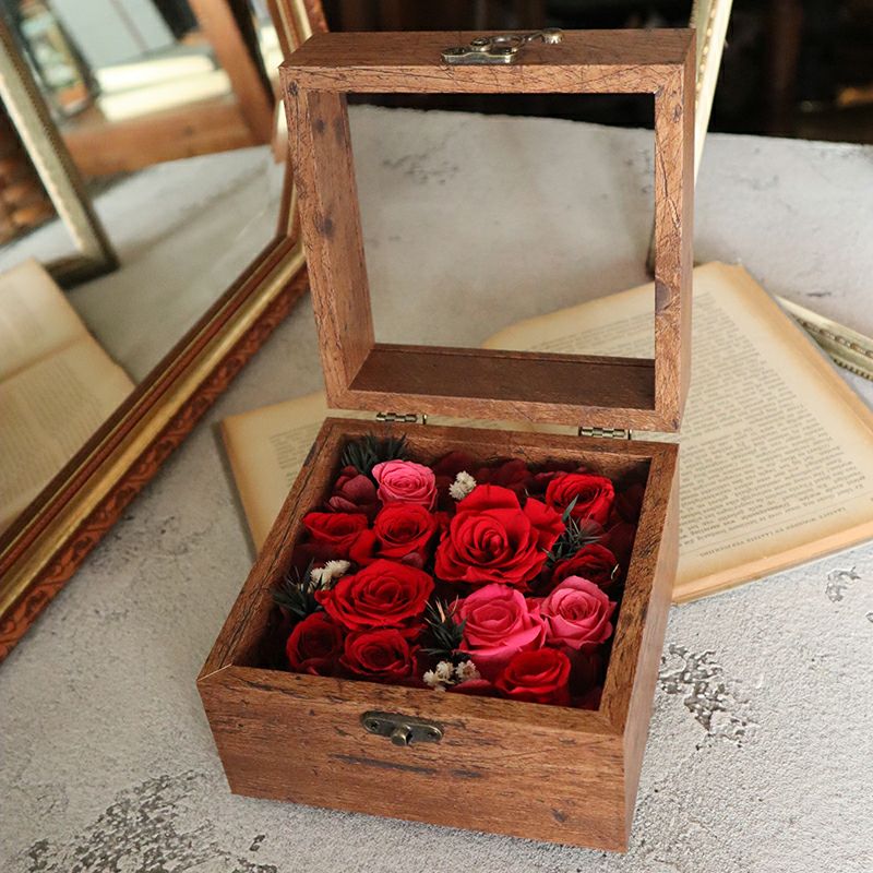 ウッド調のボックスフラワー(ダズンローズ)