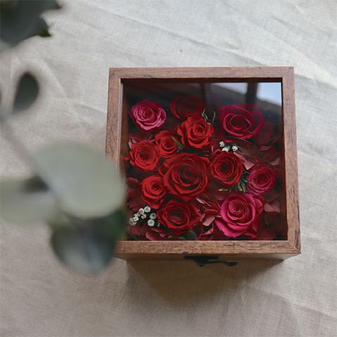 ※プリザーブドフラワーは、生花に特殊な加工を施し、人工的に着色したお花です。カーテンや壁紙などに色が移る場合がございますので、ご注意ください。